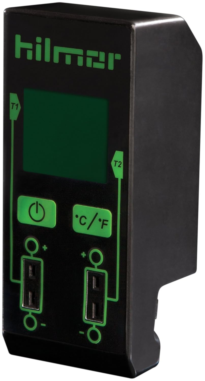 Use the Hilmor Dual Readout Thermometer to measure temperatures accurately and efficiently. Its compact design allows for manifold compatibility and independent use. The two K-style thermocouple clamps provide quick readings, making this tool essential for HVAC technicians.