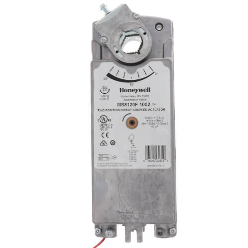 The Honeywell MS8120F1002 is a 24v electric actuator designed for efficient and reliable damper control in on/off systems. It features a powerful torque of 175 in-lb and incorporates a spring return mechanism for quick positioning.