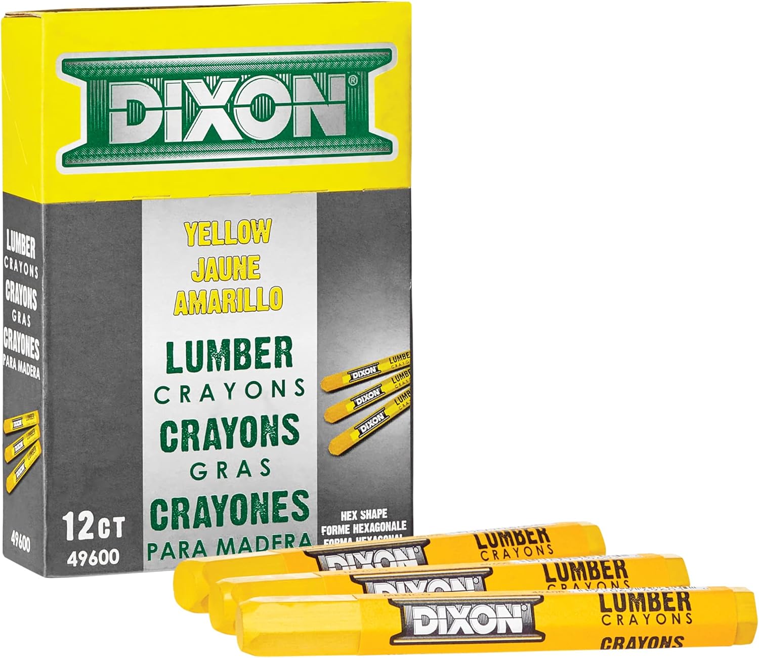 Dixon 14-254 Industrial Lumber Marking Crayons 4.5 x 1/2 Hex Yellow 12-Pack (X49600)