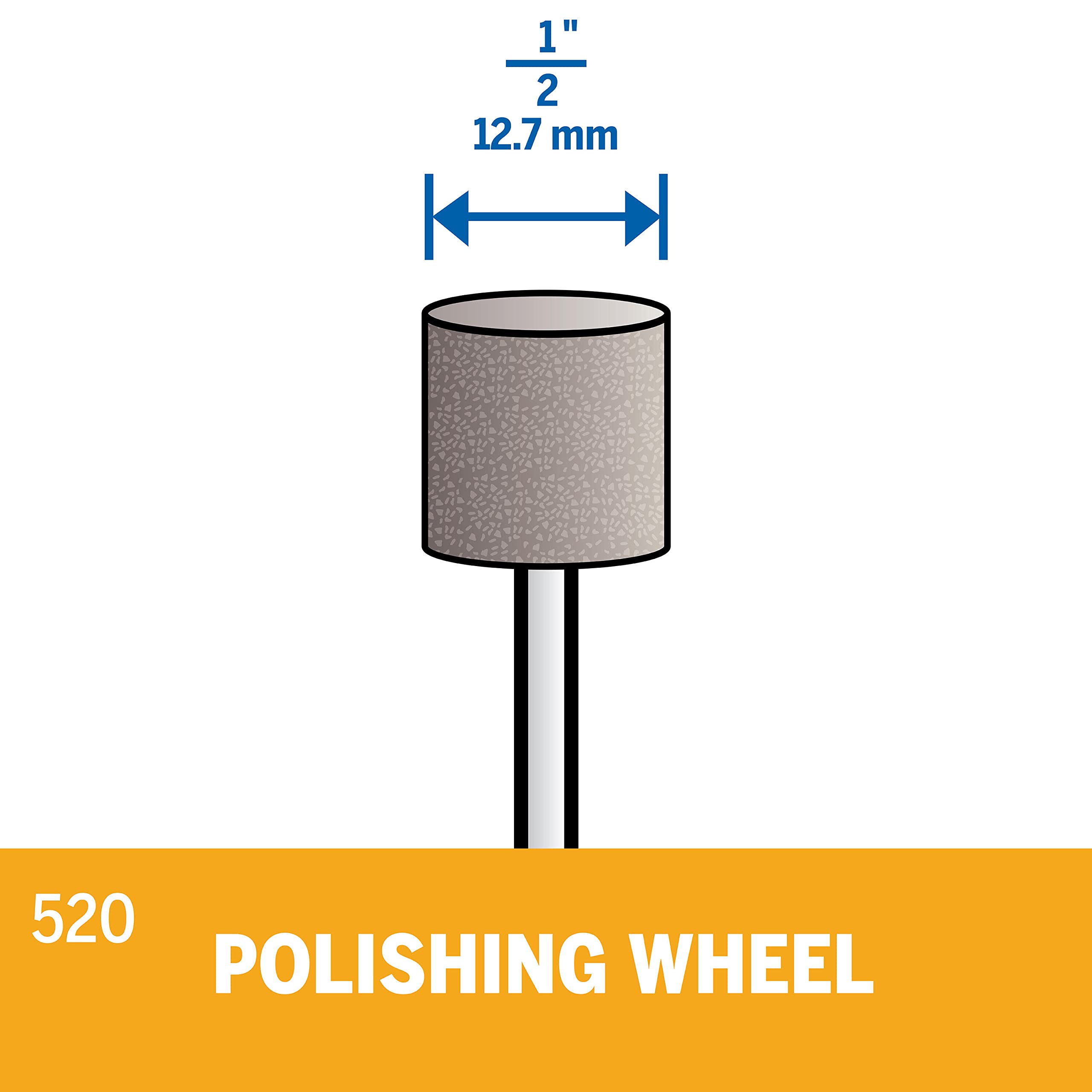 The Dremel 520-02 is a polishing wheel designed for rotary tools. This wheel features silicon carbide impregnated felt for effective polishing. The pack includes two polishing wheels for extended use.