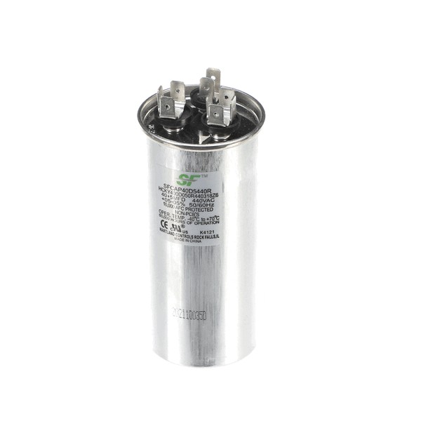 This item for Mavrik 8110548 is a dual capacitor rated at forty microfarads and seven point five microfarads, with a voltage rating of four hundred forty volts. This component is essential for starting and running motors in various HVAC systems.