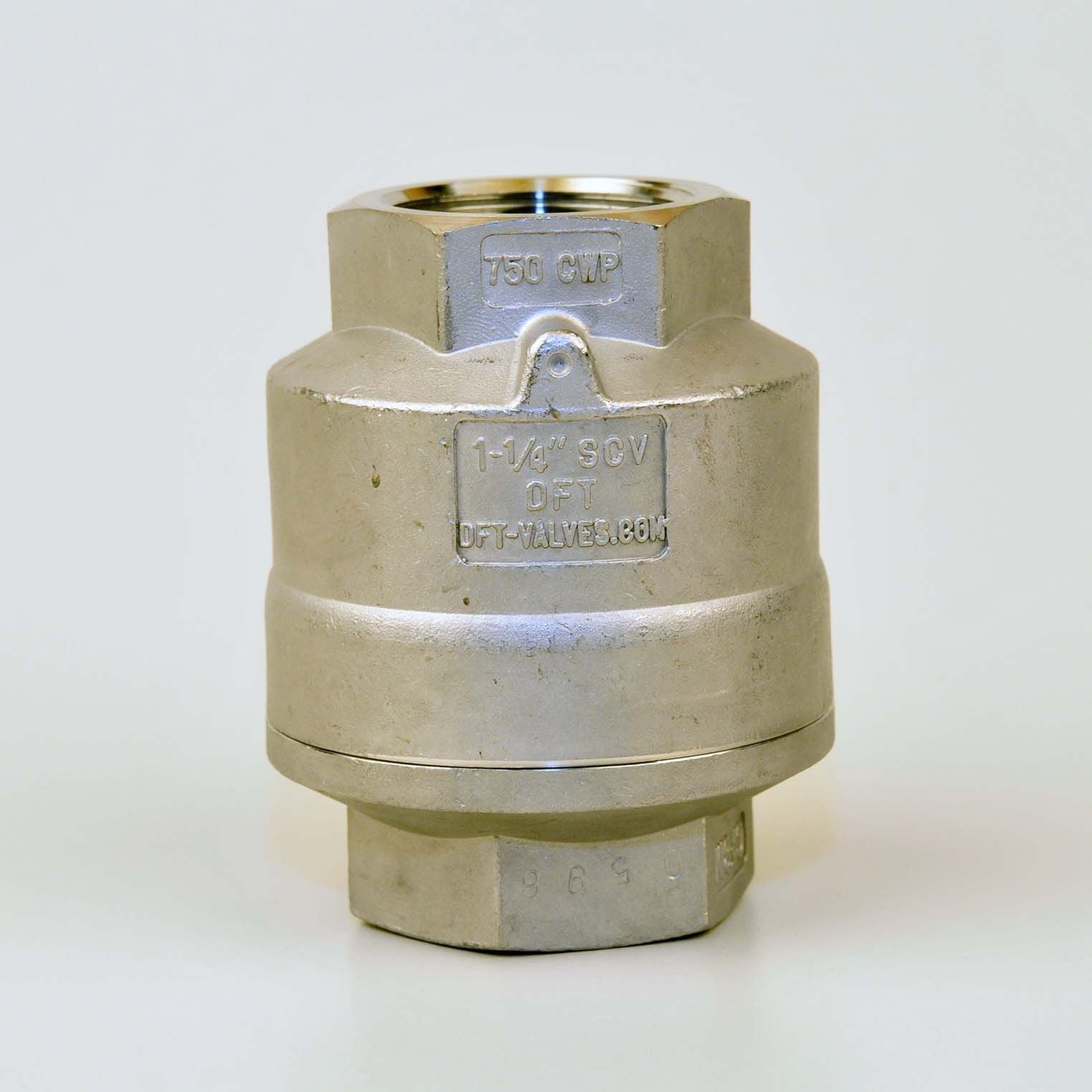 Durabla is the brand of the SCV 1-1/4 inch Stainless Steel NPT Check Valve, designated with MPN 8371. This check valve is designed to prevent backflow in piping systems. Its stainless steel construction ensures durability and resistance to corrosion.