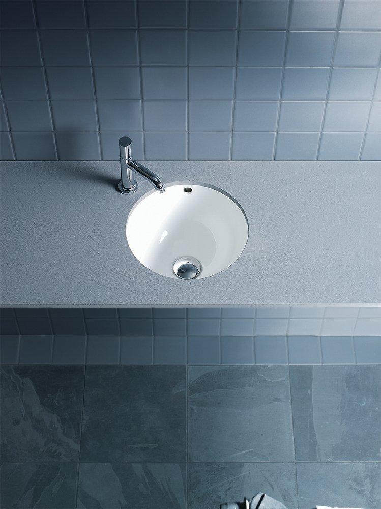 The Duravit 0319270000 Architec Round Undermount Bathroom Sink offers a sleek design suitable for various bathroom styles. This sink measures twelve and five-eighths inches, making it compact yet functional.