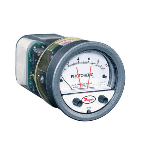 The Dwyer A3205 is a Photohelic pressure switch gauge designed for a range of applications including air conditioning systems and clean rooms. This device combines multiple functions into a single unit, minimizing the need for multiple instruments and saving both time and inventory cost.