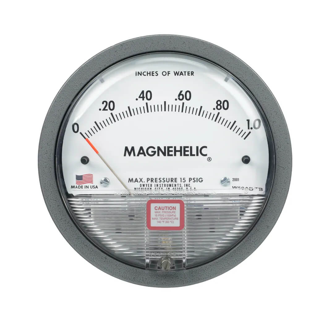 The Dwyer 2000-0 Magnehelic Differential Pressure Gauge is an essential tool for measuring and monitoring pressure differences in a variety of industrial applications. This gauge offers a range of 0 to 0.5 inches of water column (WC) and features a durable, compact design suitable for diverse environments. Using a simple, frictionless magnetic movement, this gauge ensures accurate readings for low-pressure systems.