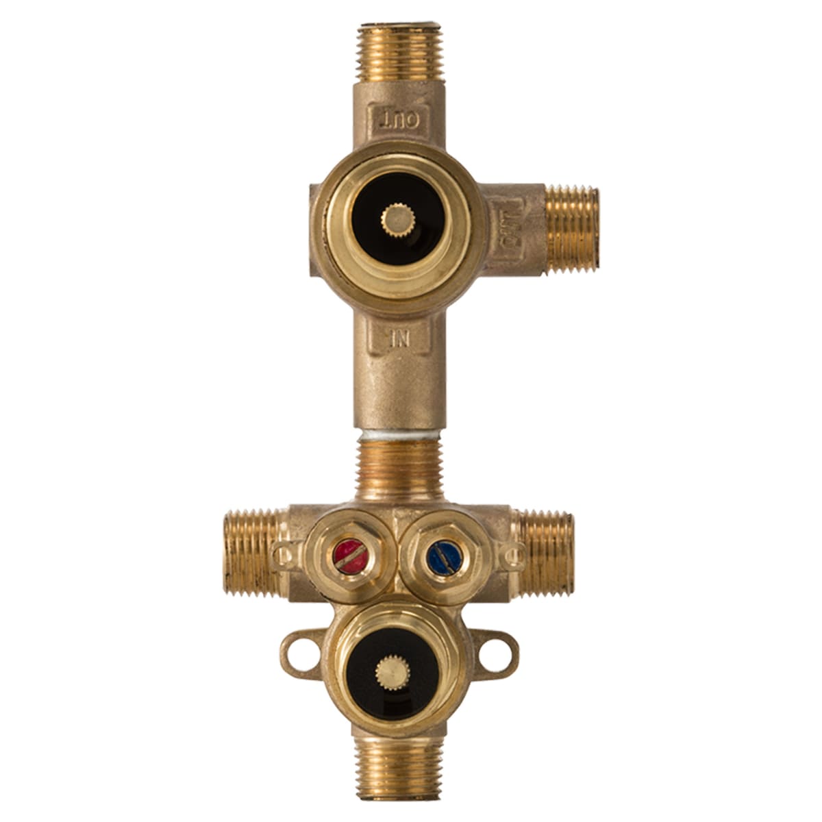 The DXV D35005522S.191 is a durable thermostatic rough valve with a two-handle design and a two-way diverter. It is built from forged brass for longevity and reliability in various plumbing applications.