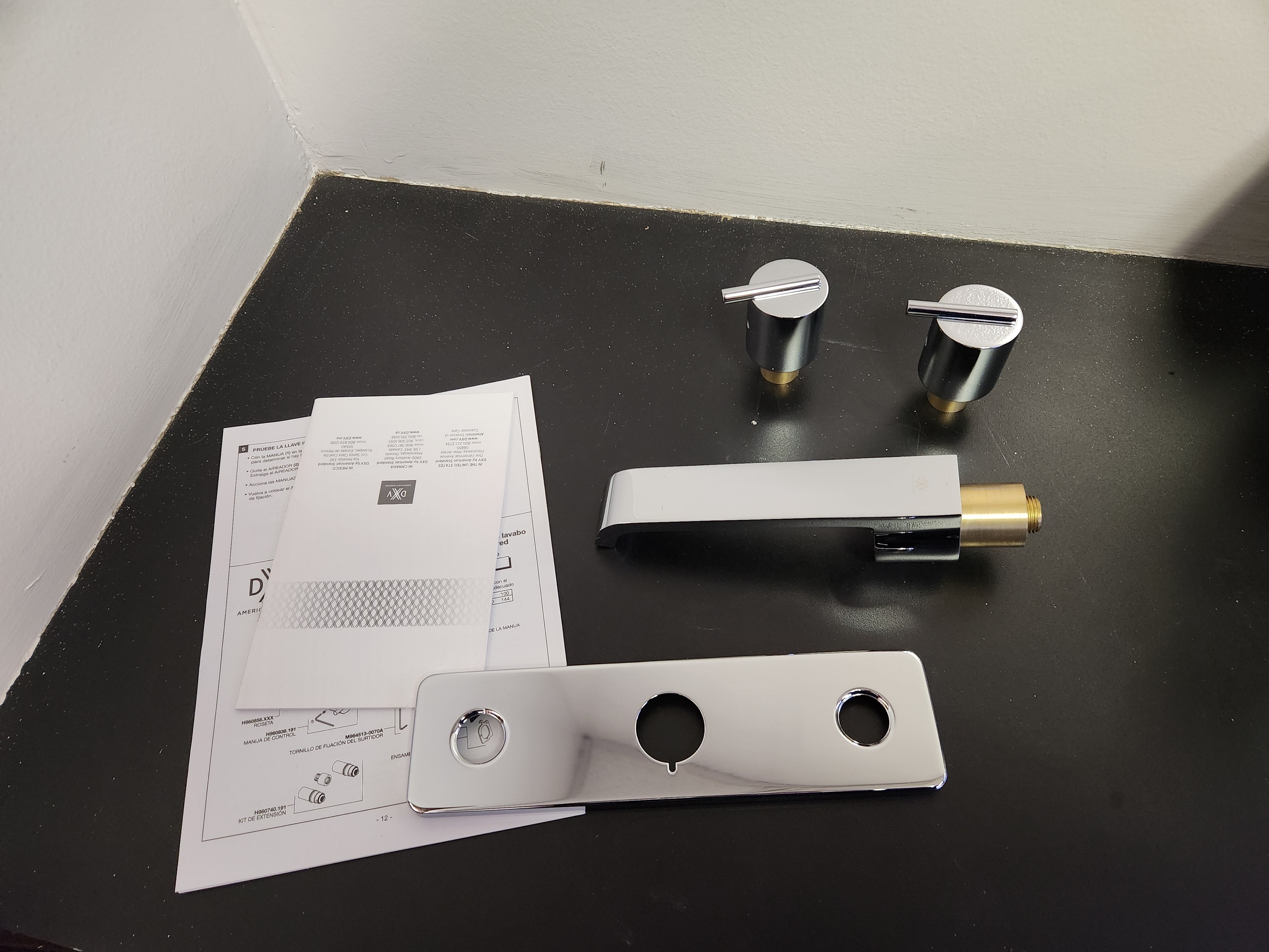 The DXV D35100450.100 is a dual control wallmount lavatory trim designed for use in bathrooms. It features a polished chrome finish that is suitable for various sink styles. This trim set is an essential component for any plumbing installation needing dual control for water temperature and flow.