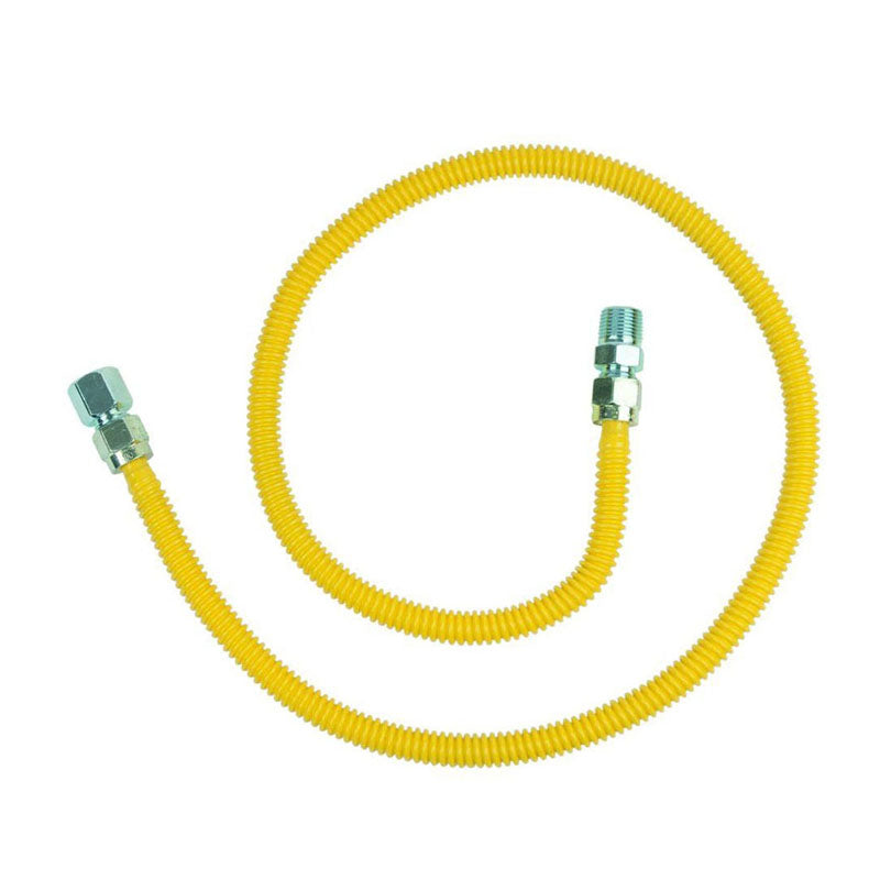Easyflex EFGC-038-YE-1011-60 is a fifty-inch long yellow coated gas flex connector. This connector is crafted for flexibility and durability. It is CSA certified and undergoes rigorous testing to ensure quality.