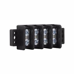 The Eaton TB345-06 BUS BARRIER BLOCK is a terminal block designed for efficient wire management. This 6-pole double row terminal block supports wire sizes from twenty-two to eight AWG, making it versatile for various applications. It operates at a voltage rating of six hundred volts and a current rating of forty-five amps. Ideal for use in stationary machine equipment, this panel-mount product offers a robust solution for connecting multiple circuits.