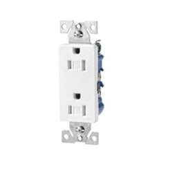 EATON TR1107B-BOX is a duplex decorator straight blade tamper resistant grounding receptacle. It operates at one hundred twenty-five volts and fifteen amperes. This product is suitable for residential use and adheres to the 2011 NEC code requirements.