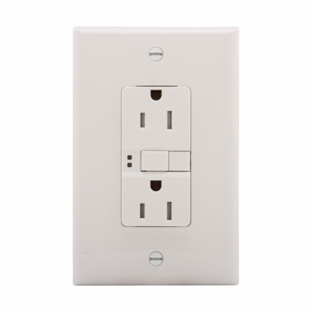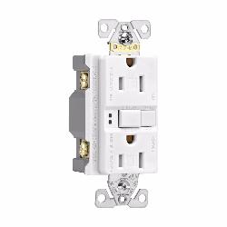 The Eaton TRSGF15W is a self-test GFCI receptacle designed for residential and industrial use. It provides protection against ground faults and ensures safety in wet areas. This receptacle meets the latest safety standards and is suitable for a variety of applications.