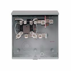 Eaton UBHTRS223ARHCH is a meter socket rated for two hundred amperes. This socket is designed for residential service and features a solid top, four jaws, and a ringless cover. It connects to solid conductors between six AWG and three hundred fifty kcmil.