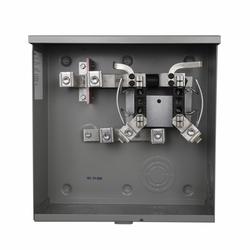 The Eaton UHIRS223ACVCH is a meter socket designed for residential service. This unit operates at six hundred volts and supports two hundred amp service. It is suitable for both underground and overhead feed installations. Key features include a solid top, four jaws, and compatibility with wire sizes from eight to three hundred fifty kcmil.