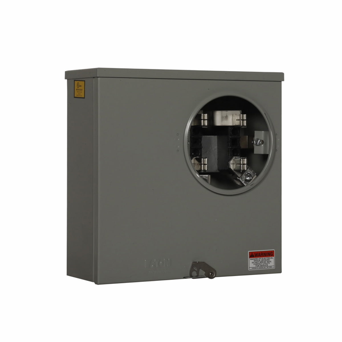 Eaton URTRS223ACH is a single position meter socket designed for effective residential and light commercial use. This unit features a 200 amp capacity and supports one phase operation. It is suitable for outdoor applications, easily accommodating both surface and flush mounting.