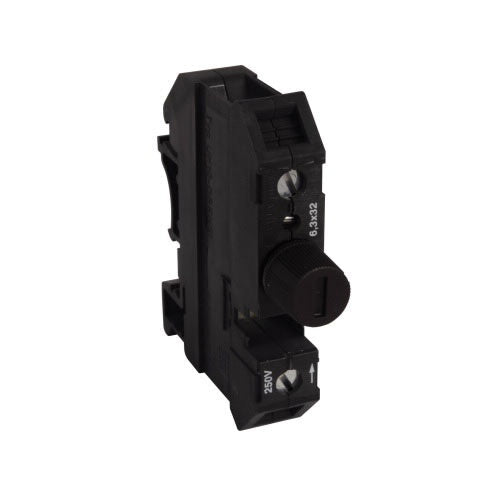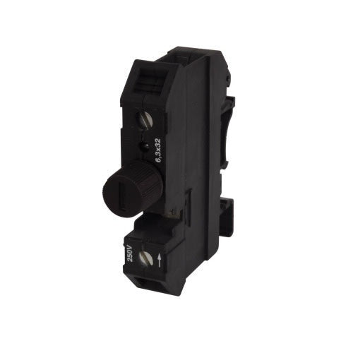 Eaton Fuse Terminal Block XBUK10FBCN is designed to handle a voltage rating of eight hundred volts and a current rating of twenty amps. This terminal block can accommodate conductor sizes ranging from twenty-two to six AWG and is mounted on DIN rails. It is suitable for use with six point three millimeters by thirty-two millimeters fuses and adheres to UL and CSA standards.