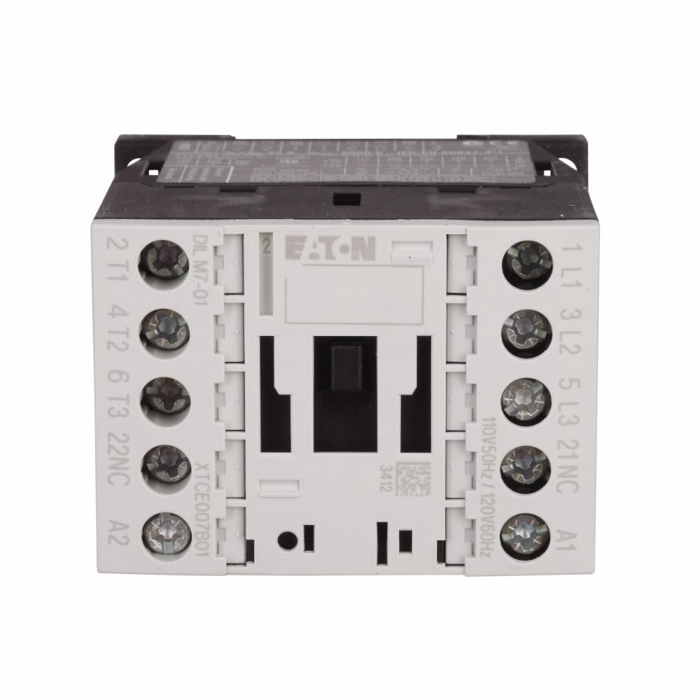 The EATON XTCE012B01T is a B-Frame full voltage non-reversing IEC contactor, designed for various industrial applications. This device operates with a coil voltage of twenty-four VAC at 50/60 Hz and supports a maximum load current of twelve A.