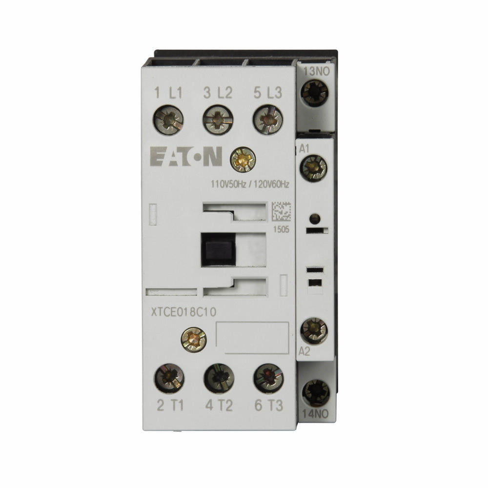The Eaton XTCE018C10T is a 3-pole, non-reversing contactor that offers efficient electrical control of motors and other loads. It features 1 normally open auxiliary contact for added functionality. The device is suitable for global use and meets various international standards.