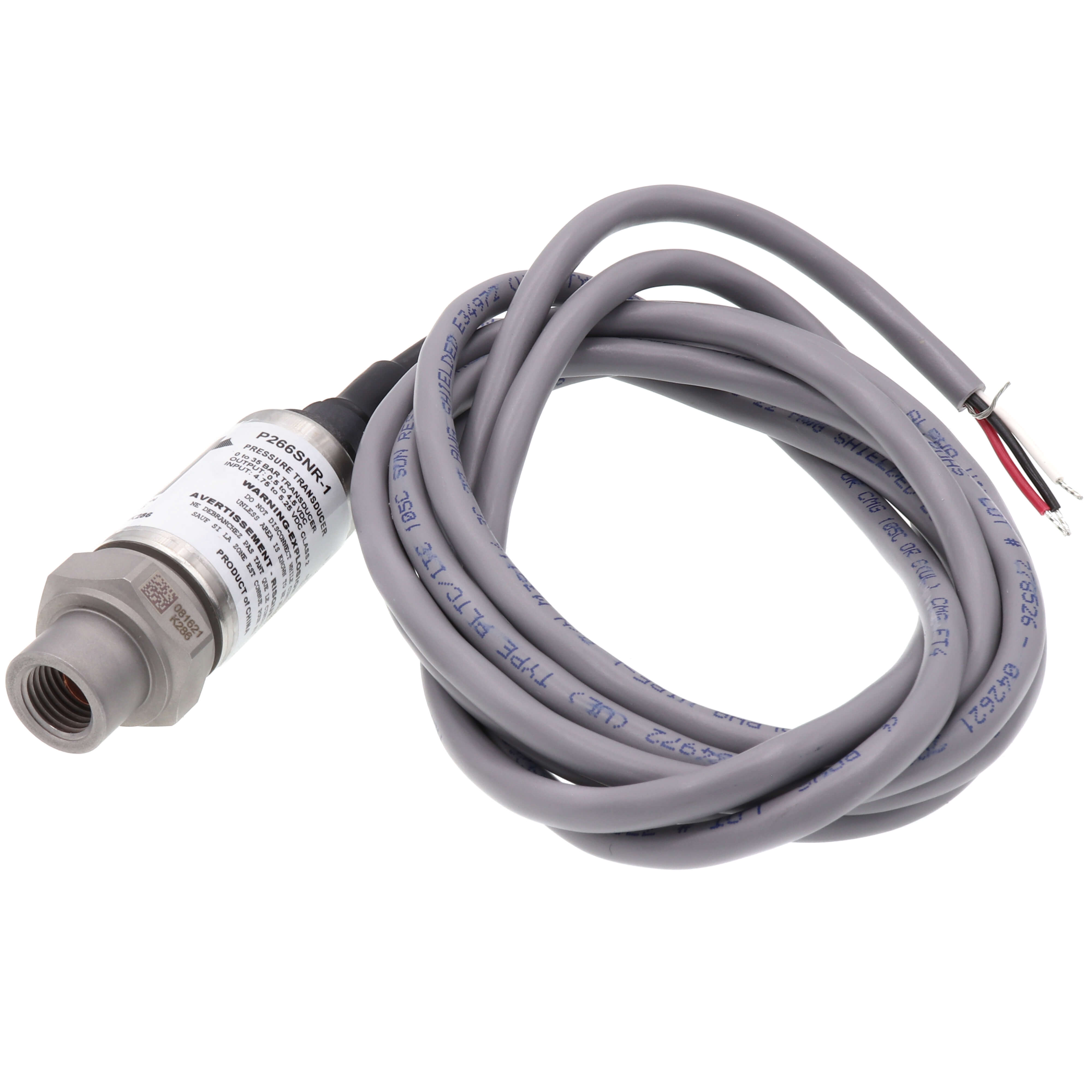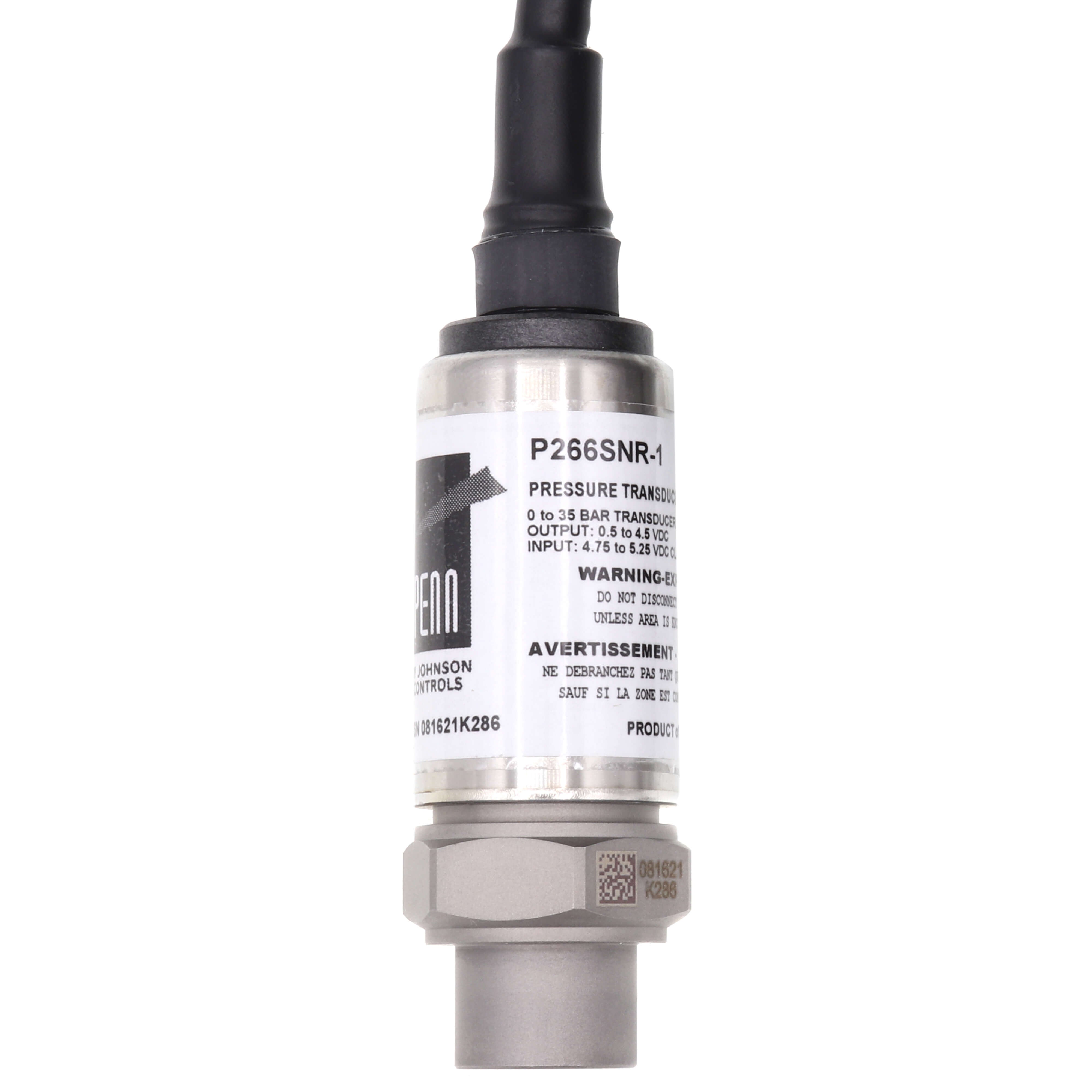 The Johnson Controls P266SNR-1C is an electronic pressure transducer that measures pressure from zero to five hundred eight psi. This device is ideal for commercial HVAC applications and can connect to various systems using a quarter-inch SAE fitting. The P266SNR-1C is designed for durability and reliability, making it suitable for demanding environments.