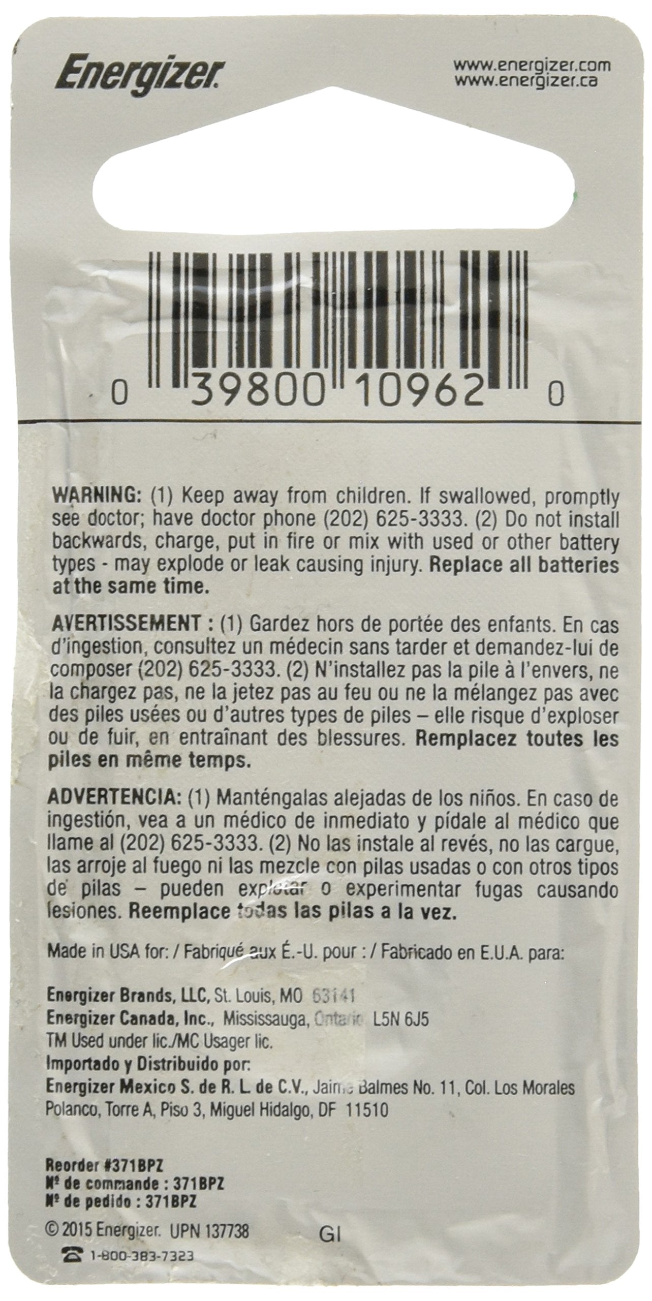 The Energizer 371BPZ battery provides reliable power for small electronics. It ensures consistent performance and long shelf life.