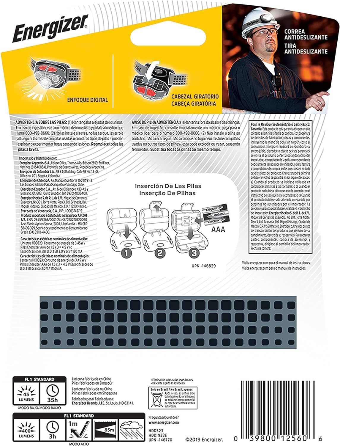 The Energizer HDDIN32E Vision HD+ Focus LED Headlight combines cutting-edge LED technology with user-friendly features. This headlight, designed for both professional and consumer use, ensures powerful, hands-free lighting in various settings, including industrial environments. The product is enhanced with digital focus and memory recall features, making it an essential tool for any task requiring precision lighting.