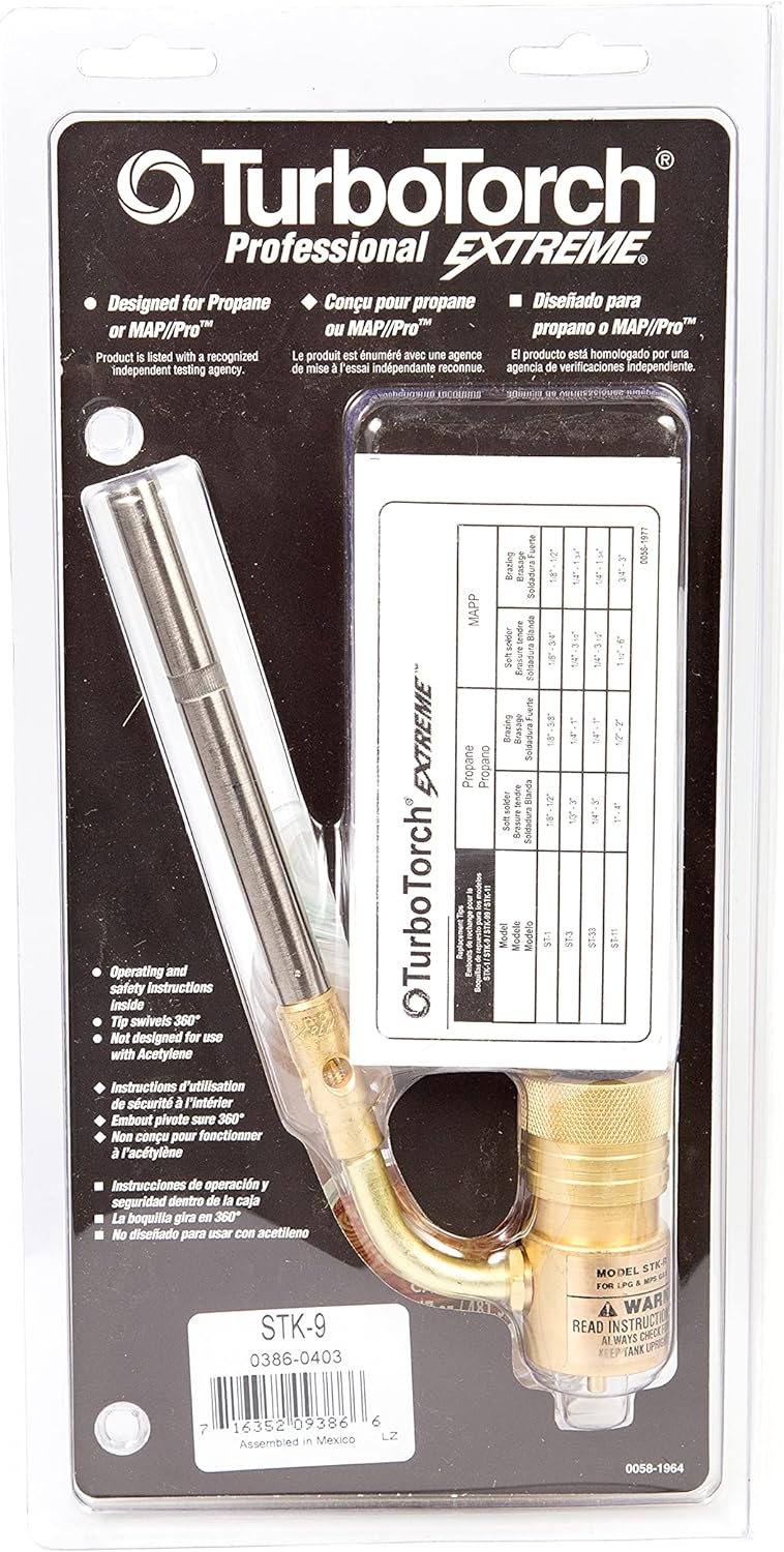ESAB 0386-0403 Turbotorch STK-9 Hand Torch Kit for Soft Soldering and Brazing Copper, Brass, Steel, Bronze, Aluminum, Propane/Mapp Pro, Extreme Swirl Technology, 360 Degree, STK-R Regulator, ST-3 Tip