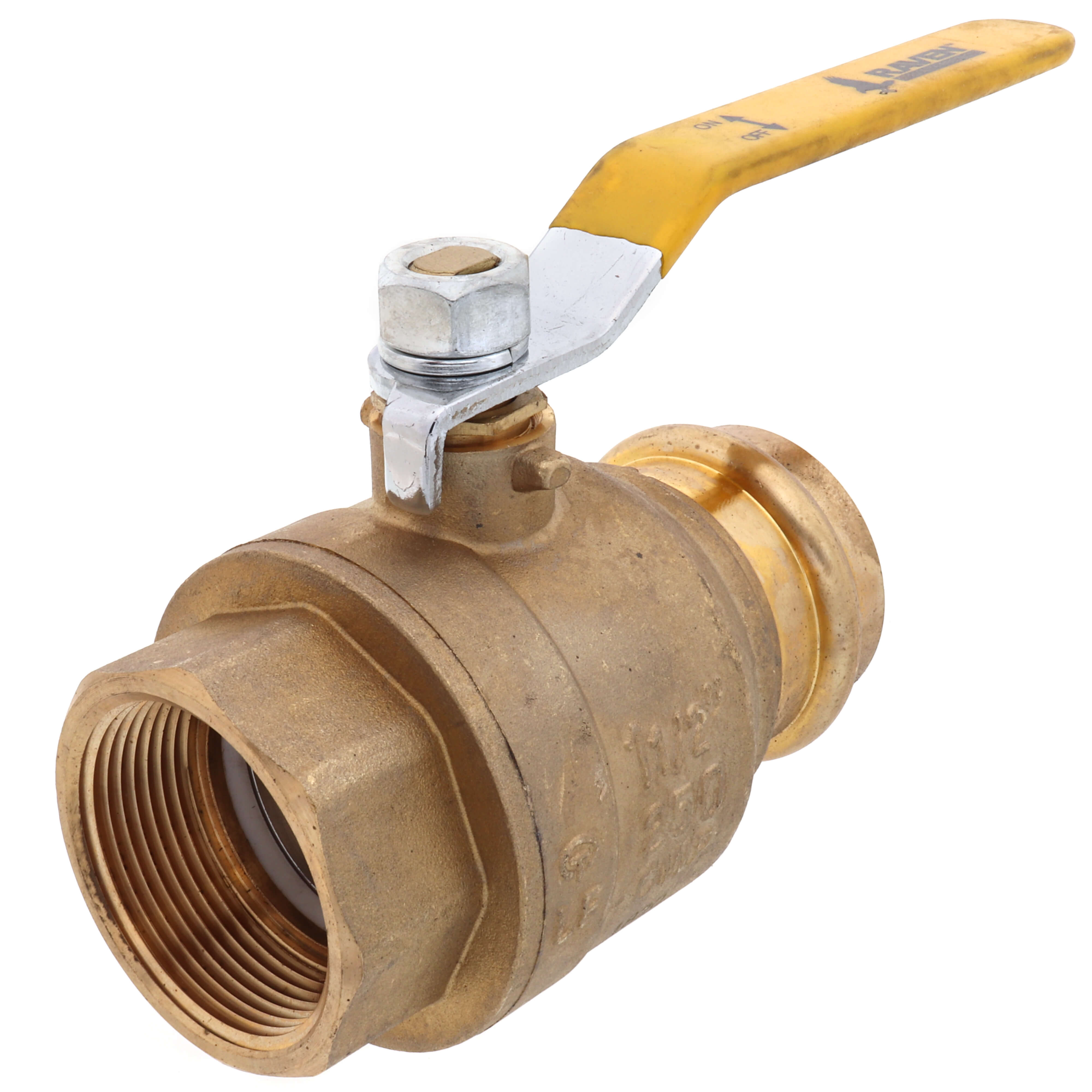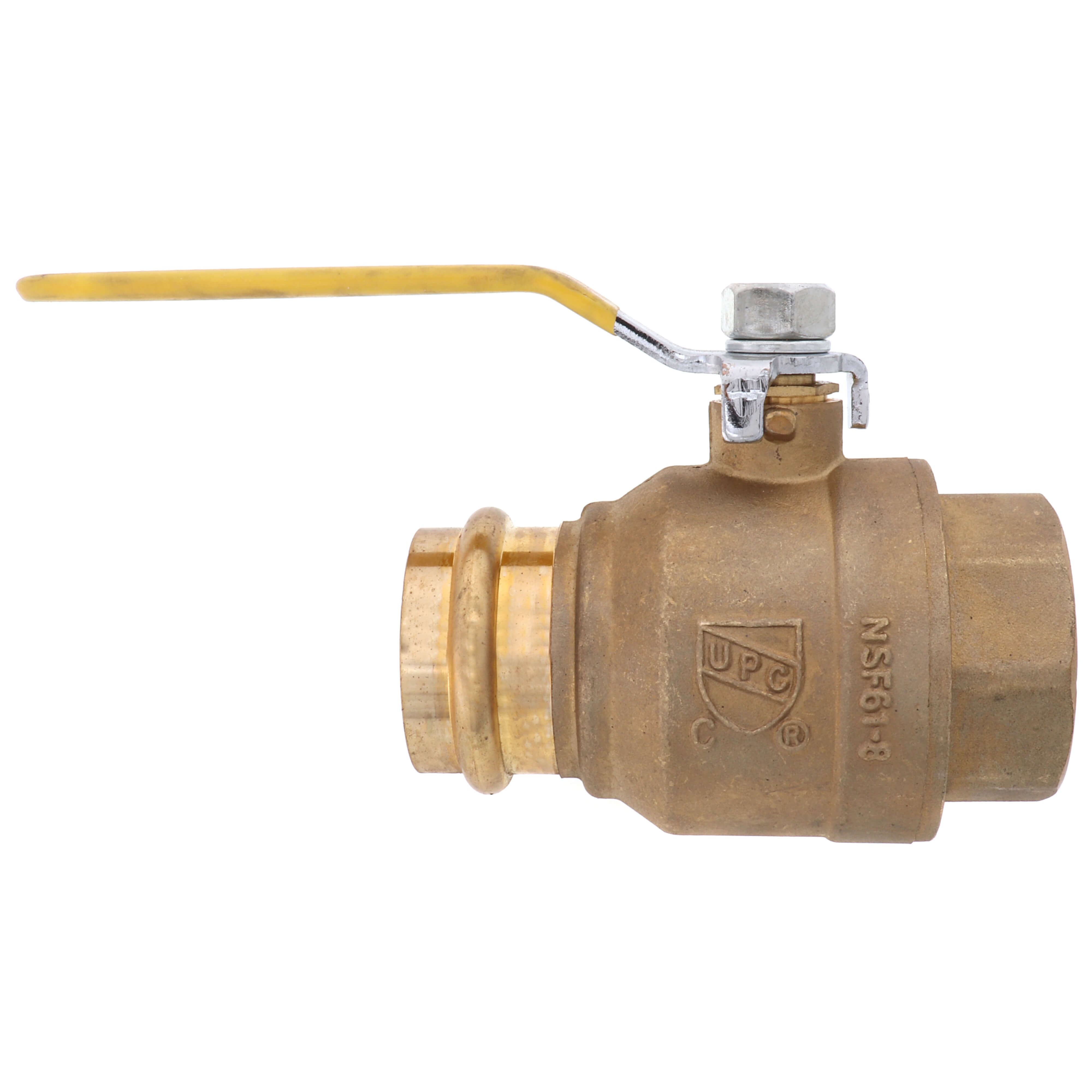 The Everflow 320T112-NL is a lead-free, 1-1/2 inch Press X FIP brass ball valve. This valve is designed for use in plumbing applications, ensuring durability and safety. It features a full port design, which allows for maximum flow and efficiency. The valve is constructed from DZR brass, meeting necessary industry standards.
