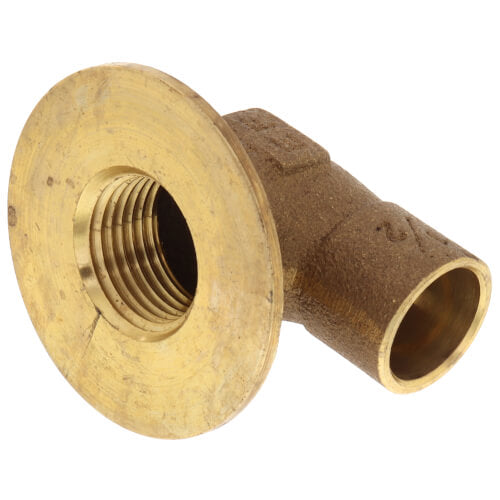The Everflow CFFE0012-NL is a 1/2 inch cast brass 90-degree flanged sink elbow. This fitting connects a copper pipe to a female thread. It is lead-free, making it safe for potable water systems.