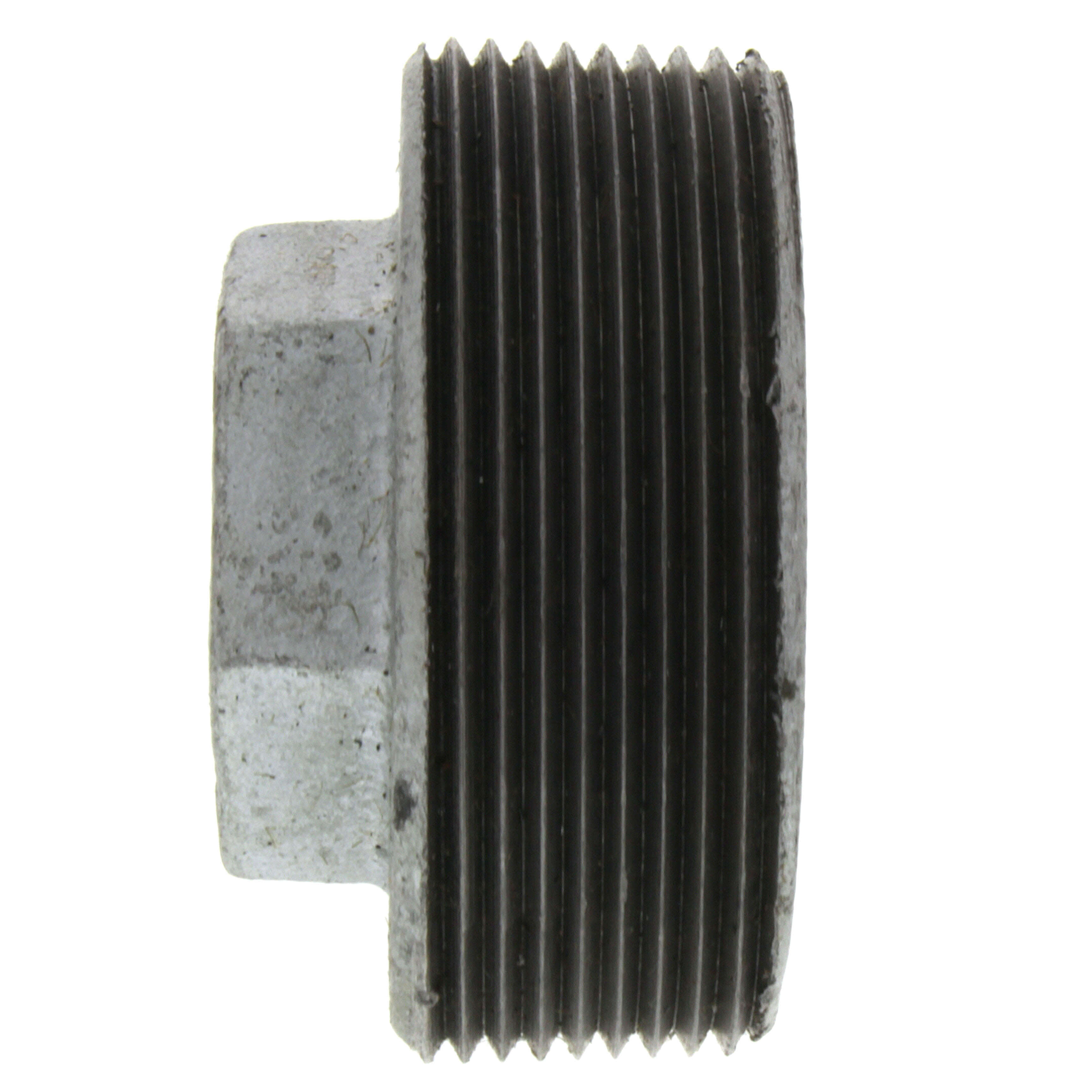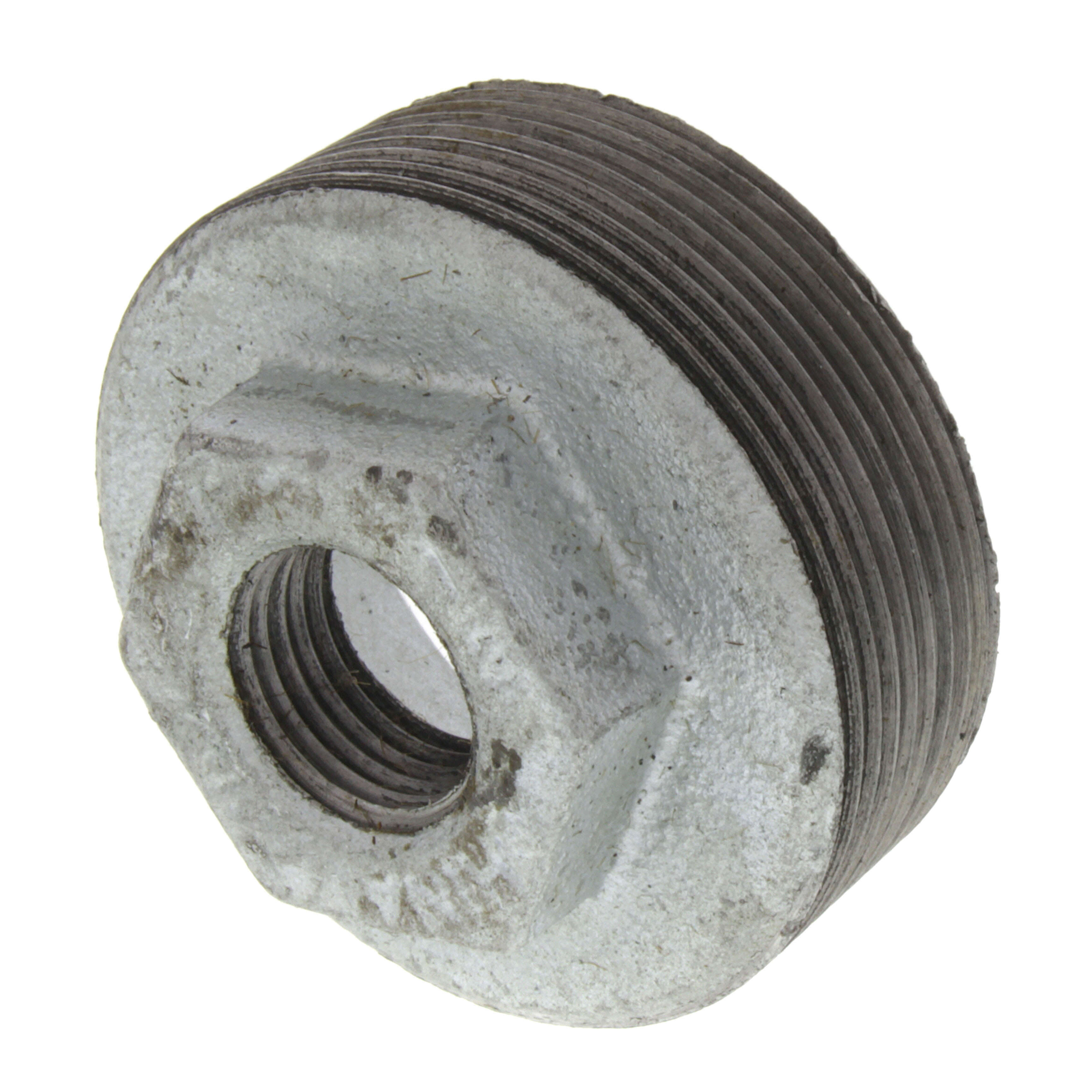 The Everflow GMBU2002 is a two by one-half inch galvanized hex bushing designed for use in plumbing applications. This fitting transforms a larger pipe size into a smaller pipe size, ensuring a secure connection.