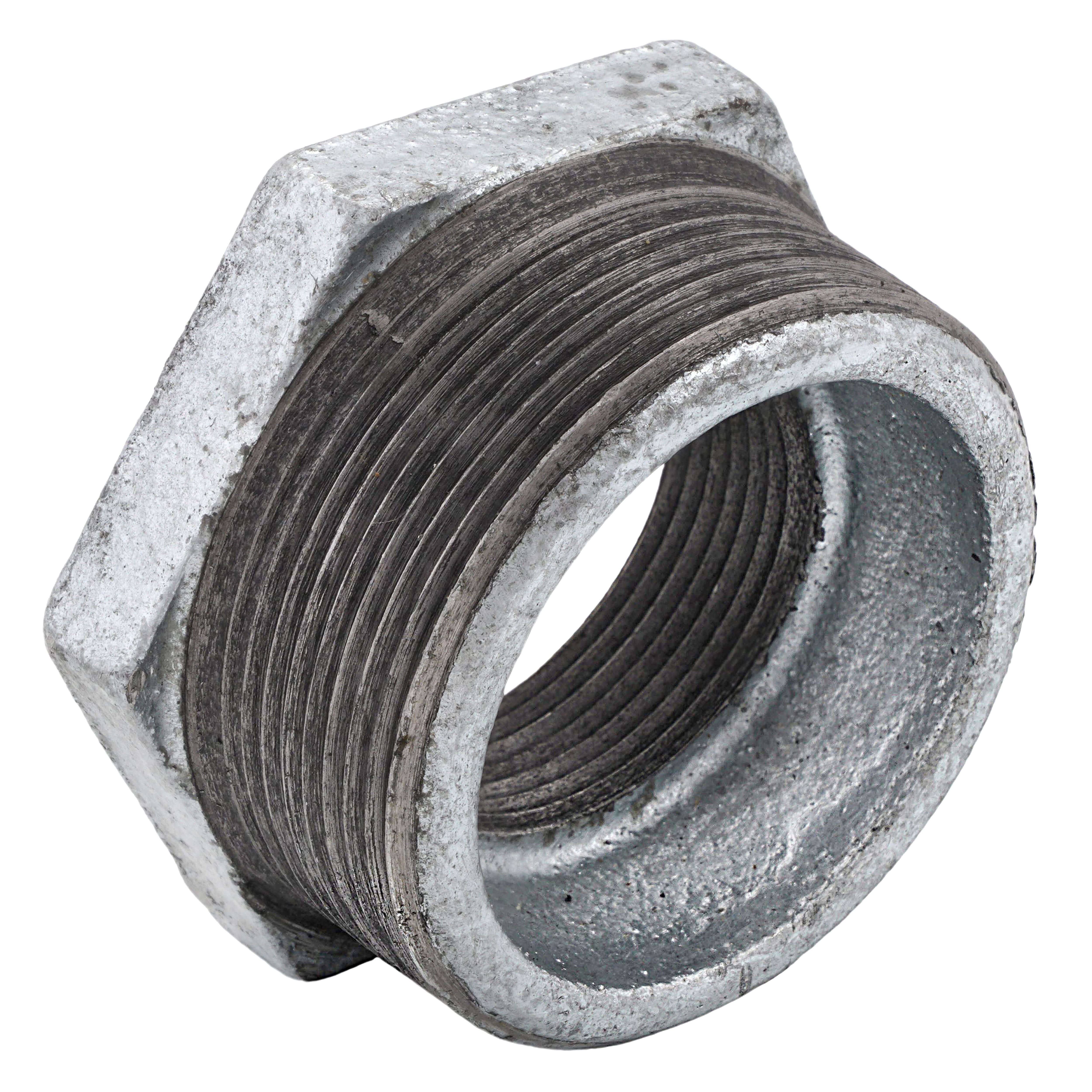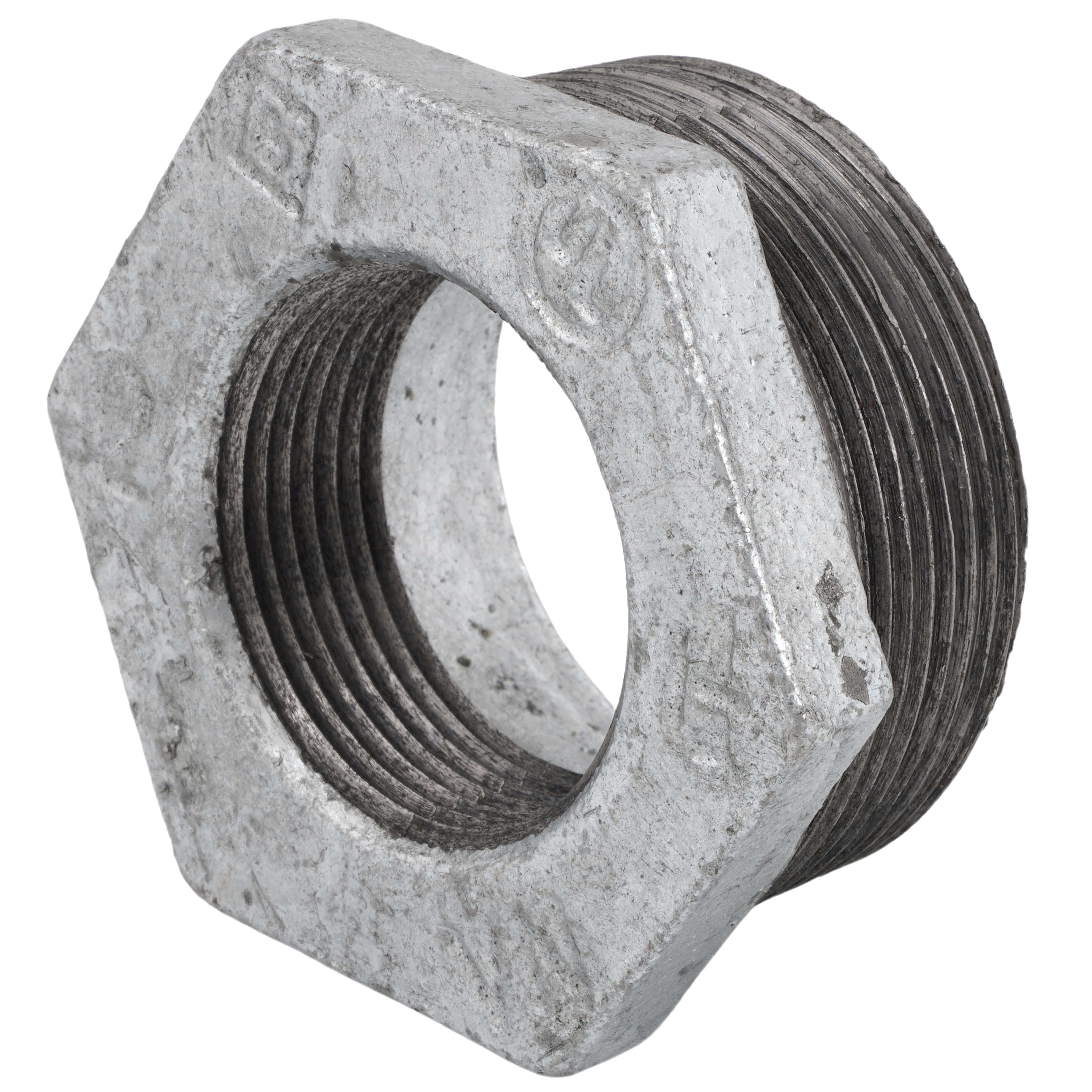 The Everflow GMBU2005 is a two by one and one-quarter inch galvanized hex bushing. This fitting is ideal for plumbing applications requiring durable connections. It is designed for use in various plumbing projects and fits easily into existing systems.