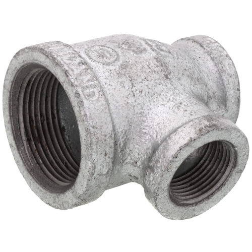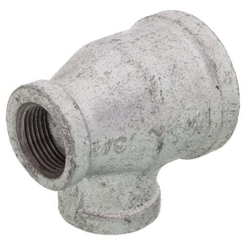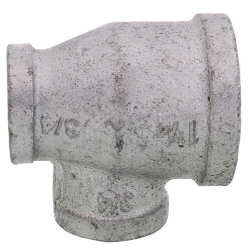 The Everflow GMRT1409 is a galvanized reducing tee designed for plumbing applications. It features a size of one and a quarter by three quarter by three quarter inches. This fitting allows for seamless transitions between different pipe sizes, making it suitable for various plumbing installations.