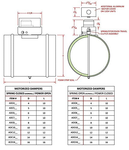 The FAMCO ADC Motorized Damper is a normally closed unit with a power open and spring return motor assembly. It operates with either twenty-four volt or 120 volt motors. The damper features an optional end switch that allows another device to activate when the damper is fully open or closed.