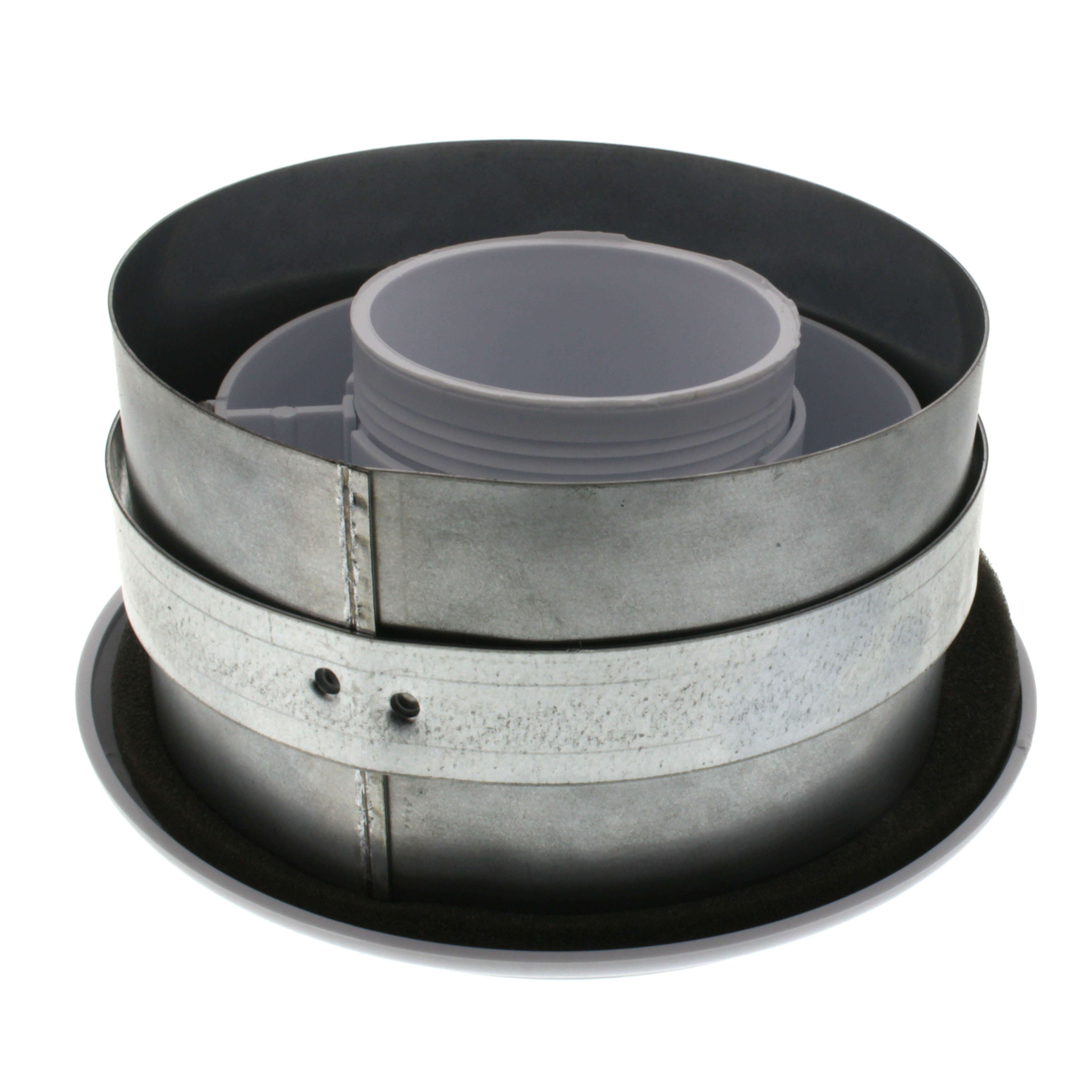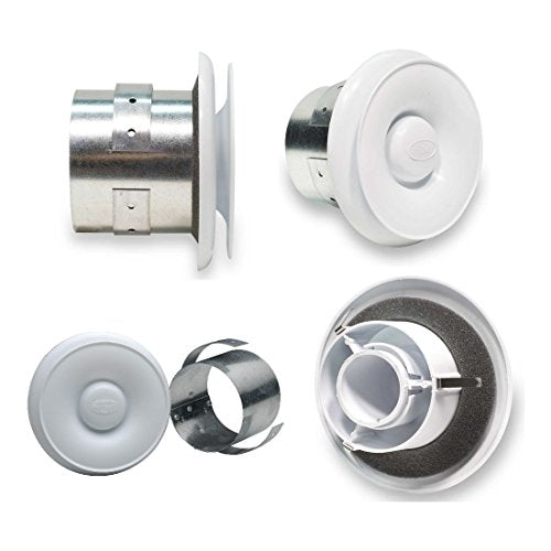 The Fantech CG6 Contour Grille with Collar for 6 Inch Duct is designed for use in ventilation systems. The grille includes a 6-inch ducted adjustable circular plastic exhaust grille and a galvanized metal collar. This model can serve either supply or exhaust applications, making it versatile in its installation.