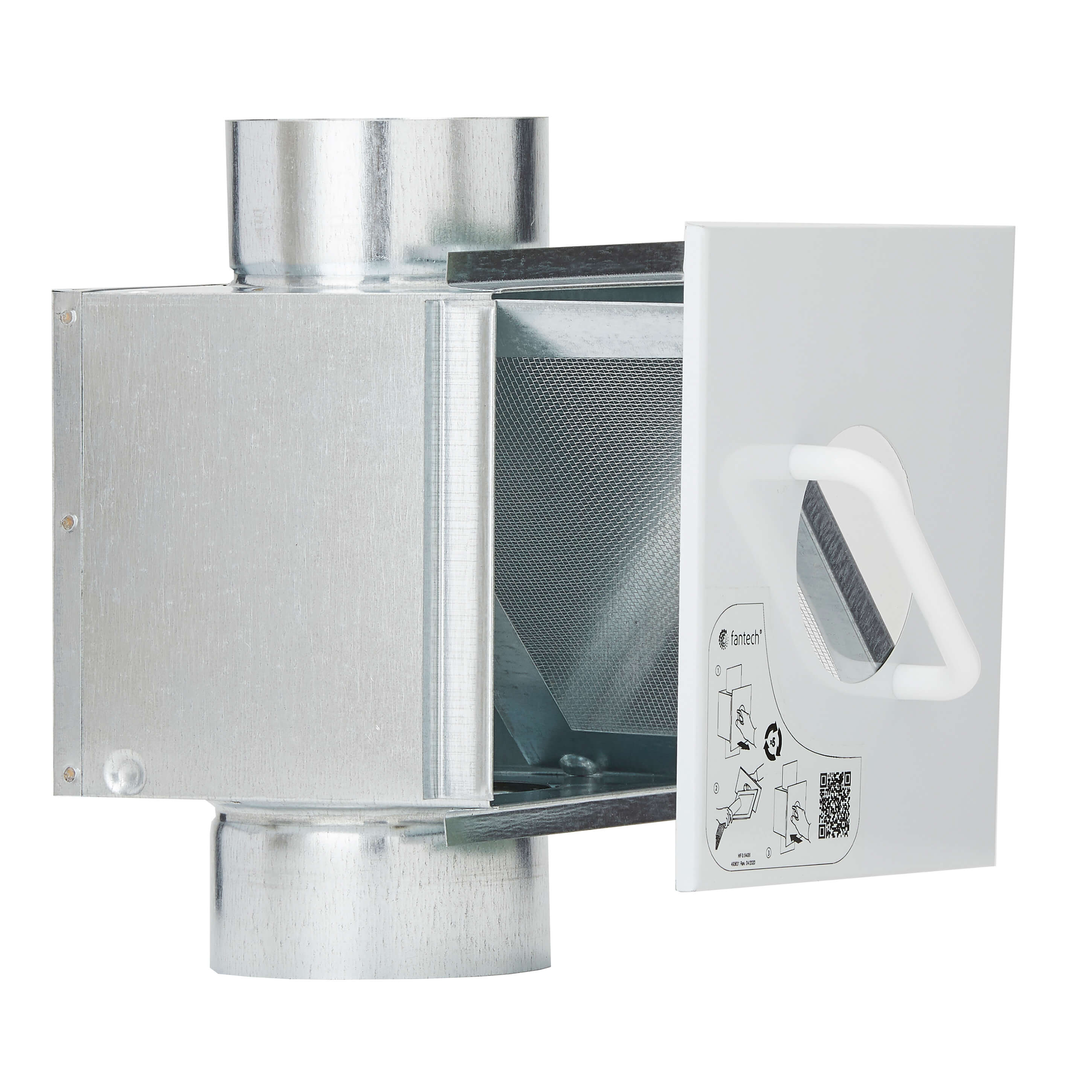The Fantech DBLT4W is a lint trap designed for use with dryer booster kits. It captures lint within dryer ducting, making it essential for efficient dryer operation. The lint trap is intended for installation about fifteen feet from the dryer using four-inch ducting. It should be placed in an accessible location for easy maintenance and lint removal.
