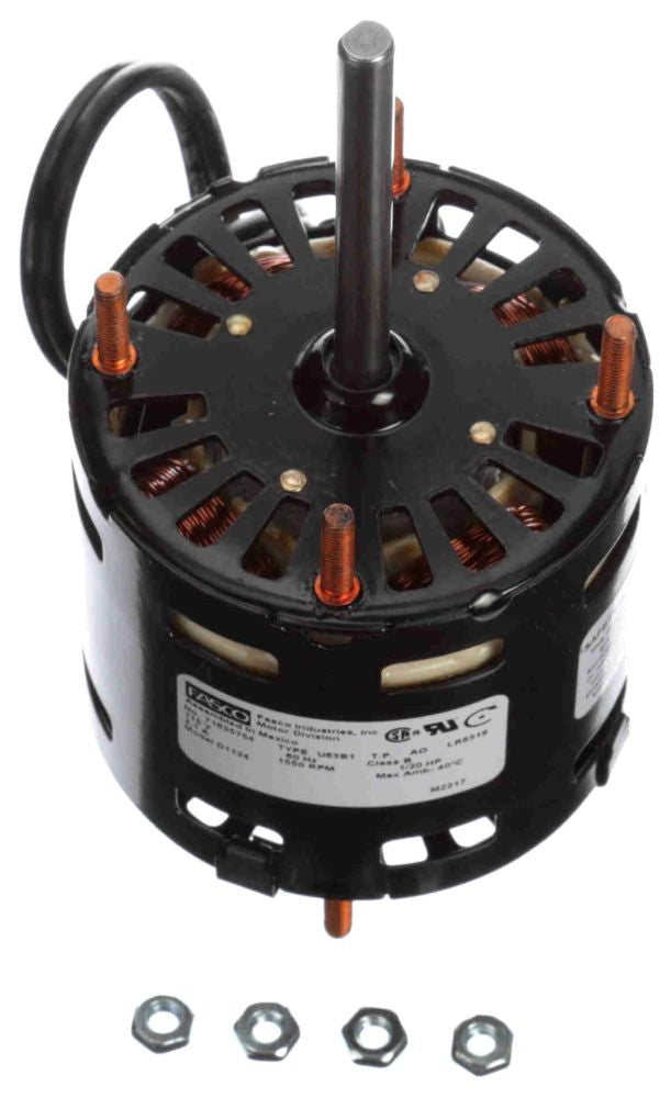The Fasco D1124 is a refrigeration fan motor designed for efficient operation in HVAC applications. This 1/20 HP motor operates at 115 VAC and can achieve speeds of 1550 RPM. It features an open air-over enclosure which allows for adequate airflow during operation.