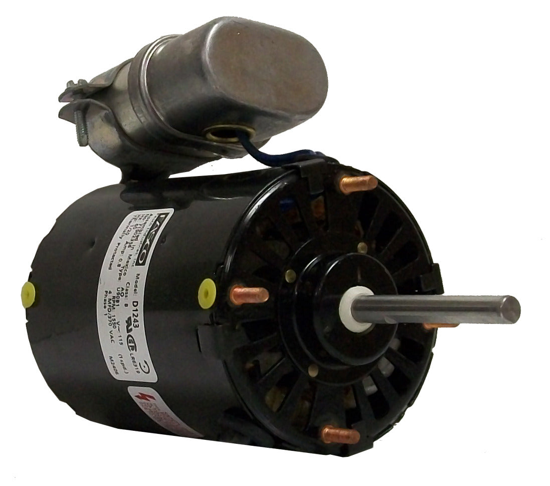 The Fasco D1245 is a 3.3 frame open ventilated permanent split capacitor evaporator coil and refrigeration fan motor. This motor comes with a sleeve bearing and operates at 1/20 HP with a speed of 1550 RPM, making it suitable for evaporator coil and refrigeration applications. It operates on a voltage range of 208-230V at 60Hz, drawing 0.3 amps. Automatic thermal protection, counterclockwise shaft end rotation, and an included 4M 370V capacitor enhance its reliability.
