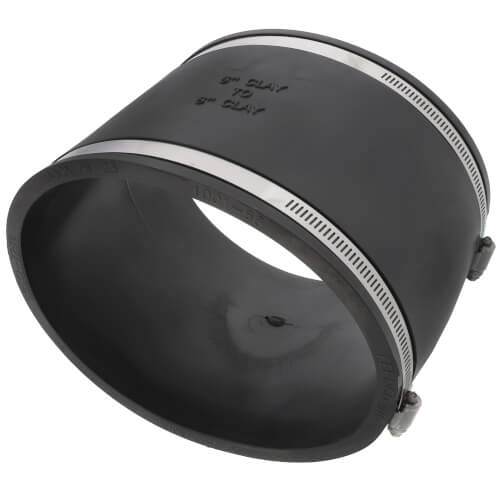 The Fernco 1001-66 is a flexible coupling designed for connecting clay pipes. This coupling is a standard size of six inches by six inches and includes a stainless steel clamp to ensure a secure fit.