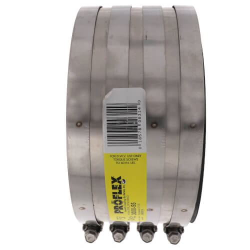 Fernco PROFLEX Pipe Coupling, MPN 3000-55, is designed for connecting pipes. This coupling fits pipes made of cast iron and plastic or steel. It has a nominal size of five inches and a standard length of three inches. The method of manufacture is welded, using rubber material.