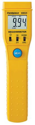 The Fieldpiece SMG5 is a standalone digital megohm meter designed to measure insulation resistance up to 2000 megaohms, with a stress voltage of 1000 VDC. Ideal for testing HVAC compressor insulation.