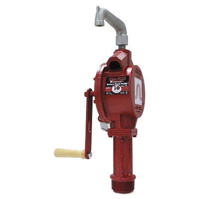The Fill-Rite FR113 Rotary Hand Pump, equipped with pail spout and telescoping steel suction tube, is designed for efficient fuel transfer at a rate of 10 gallons per minute. Ideal for agriculture and other demanding applications.