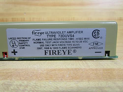 The Fireye 72DUVS4 Ultraviolet Self-Check Amplifier is an essential component for industrial combustion applications. Designed for compatibility with Fireye flame detectors 45UV5-1007, 45UV5-1008, and 45UV5-1009, this amplifier ensures enhanced flame detection accuracy and reliability.