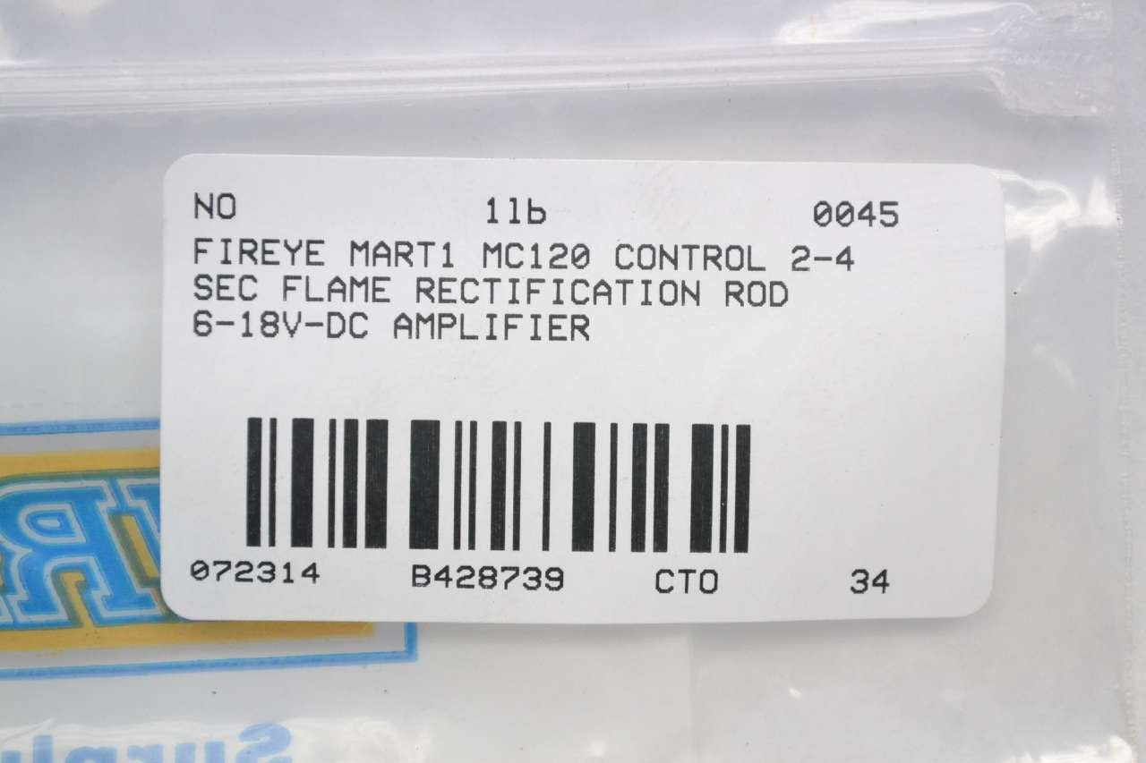 The Fireye MART1 Flame Rectification Amplifier is designed to provide reliable flame monitoring in commercial-sized burners. Utilizing advanced flame rectification technology, this amplifier delivers a response time of 2 to 4 seconds, ensuring rapid and accurate detection of flame presence or absence to streamline system operations.