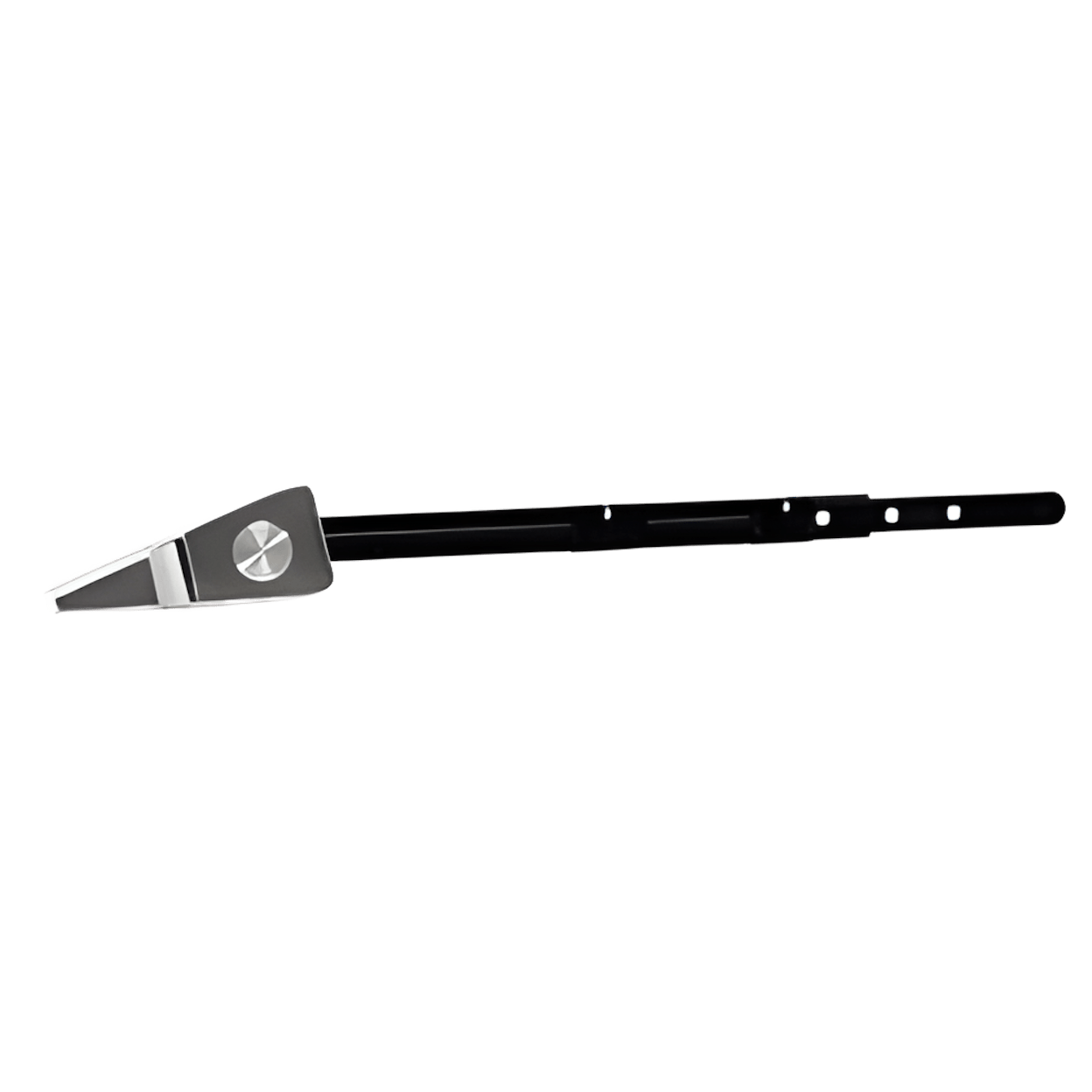 The Fluidmaster 681 is a toilet tank lever designed for standard use. It features a plastic lever arm and handle with a chrome finish. The lever's length is twelve and a half inches, and its height is one and a half inches. It fits front, side, and angle mount tanks. This lever can be easily trimmed or bent for a custom fit.