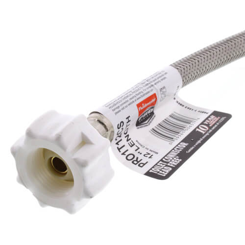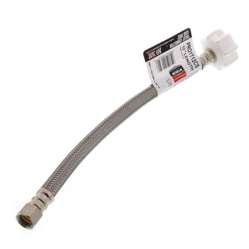 Fluidmaster PRO1T12CS is designed for use in toilet installations, providing reliable connections. This flexible water connector measures three-eighths of an inch by seven-eighths of an inch and is twelve inches long. It features click seal technology that ensures a secure fit.