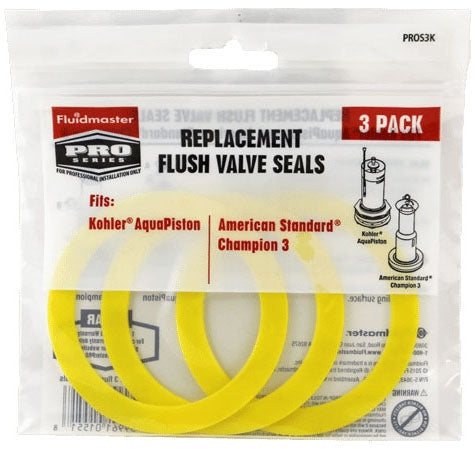 The Fluidmaster PROS3KP15 Pro Series Silicone Replacement Seal is designed for reliable performance in plumbing applications. This pack includes three silicone seals that prevent leaks from specialty flush valves. The silicone material lasts ten times longer than standard flapper material, making it a durable choice for toilet repairs.