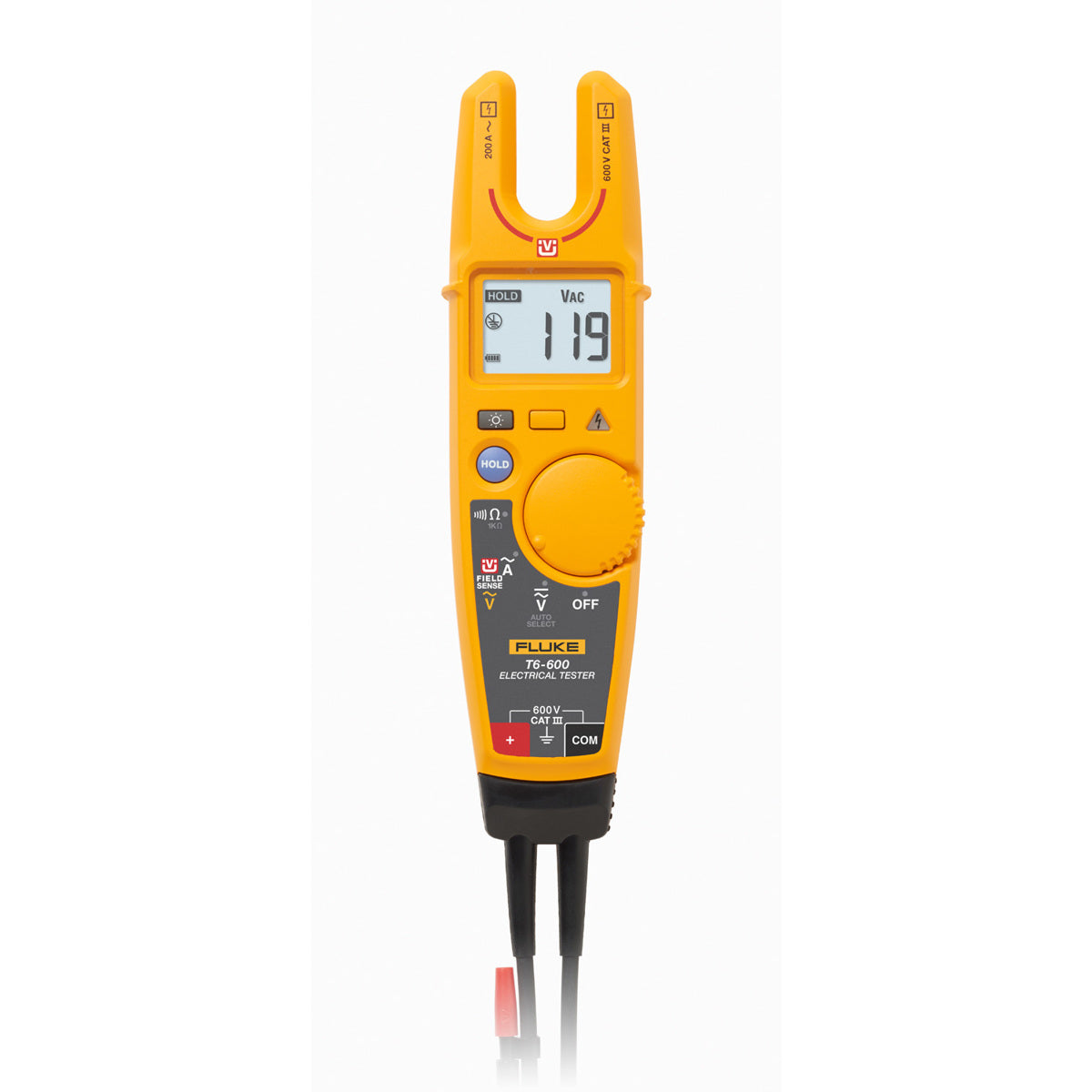 The Fluke T6-600 is an AC voltage and current electrical tester with FieldSense technology. This electrical tester allows you to measure AC voltage and current without the need for test leads. Its compact design enables access to tight spaces.