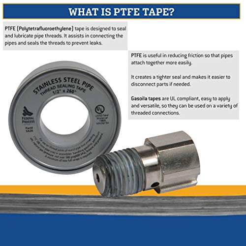 The Gasoila SA26 PTFE Thread Tape is designed for challenging service conditions with stainless steel, aluminum, and brass threaded connections. This tape helps prevent seizing and galling and is not for use with oxygen.