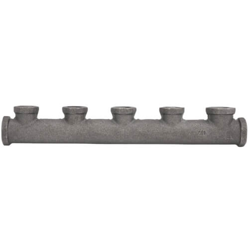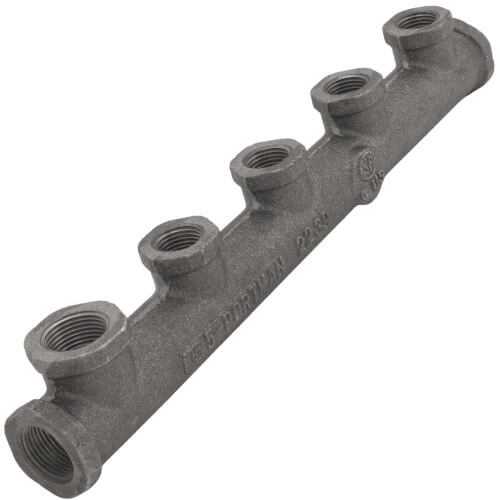 The Gastite 5-PORTMAN is a 3/4 x 3/4 x 1/2 x 1/2 inch female malleable iron 5-port manifold. This product serves as a central distribution point to manage appliance runs with ease. It features multiple mounting options and ensures quick and easy installation.