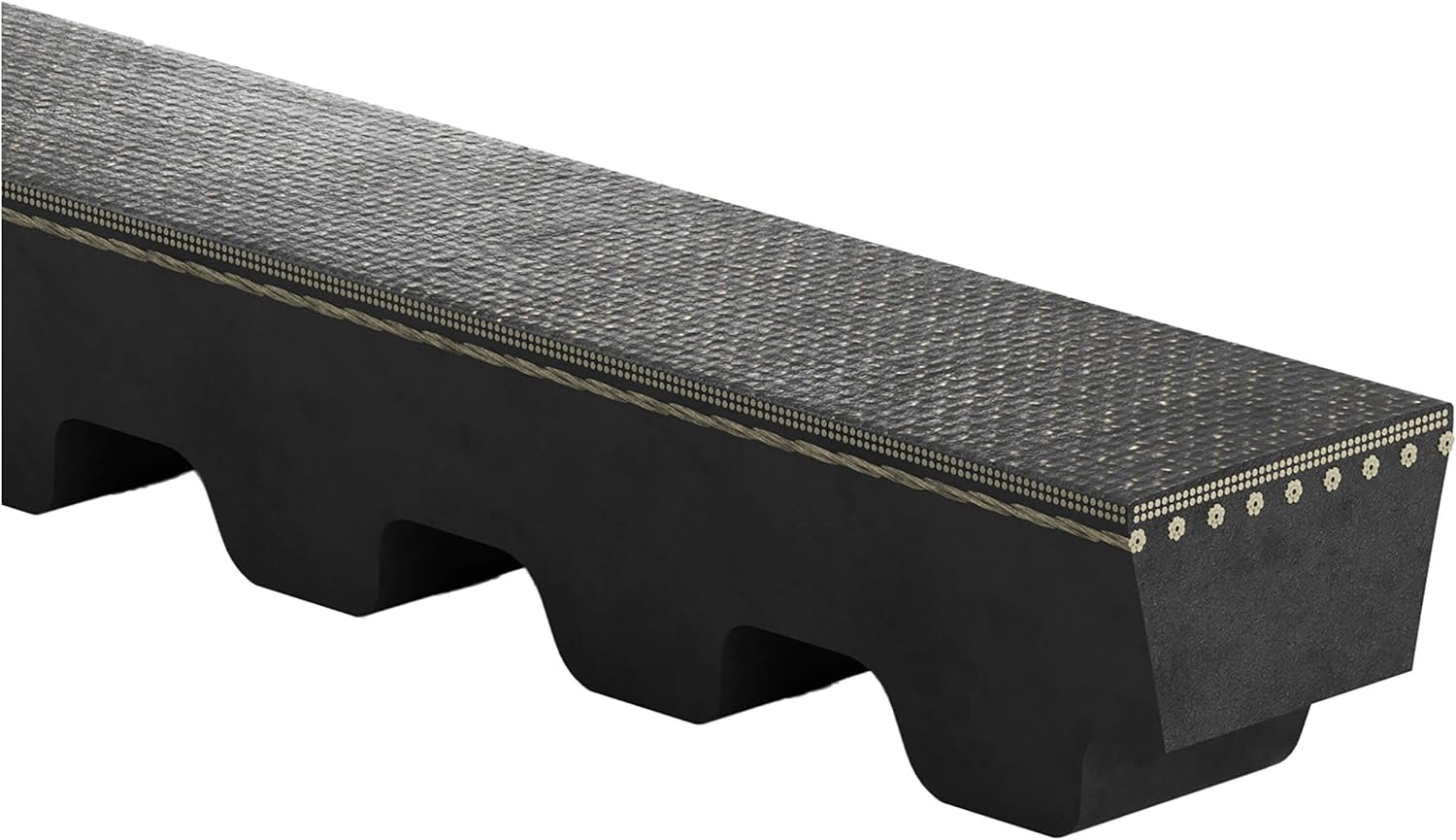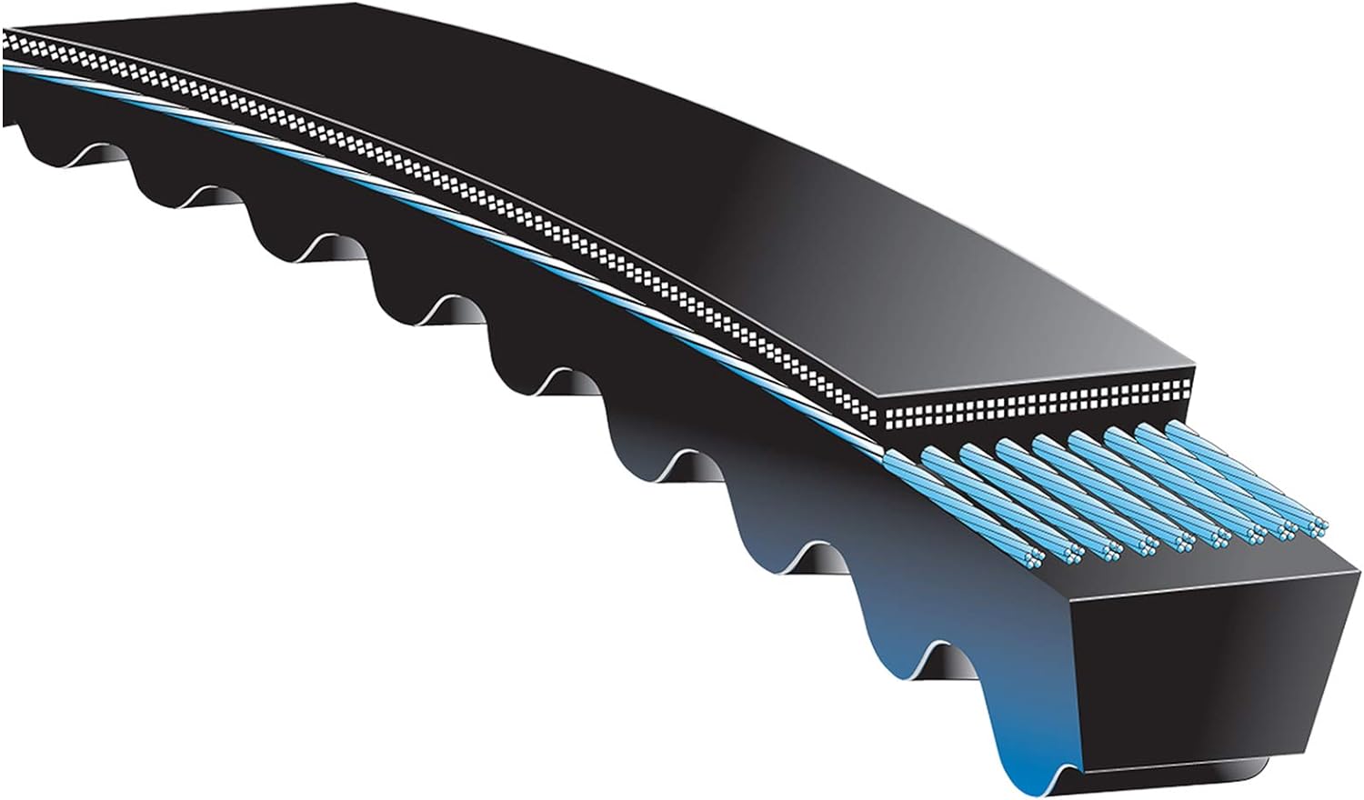 This V-belt's superior construction includes strongly bonded cords which guarantee equal load distribution and reduced stress. The notched design allows the belt to fit smaller diameter sheaves while maintaining strength and traction. Perfect for industries that require reliable and robust material handling solutions.