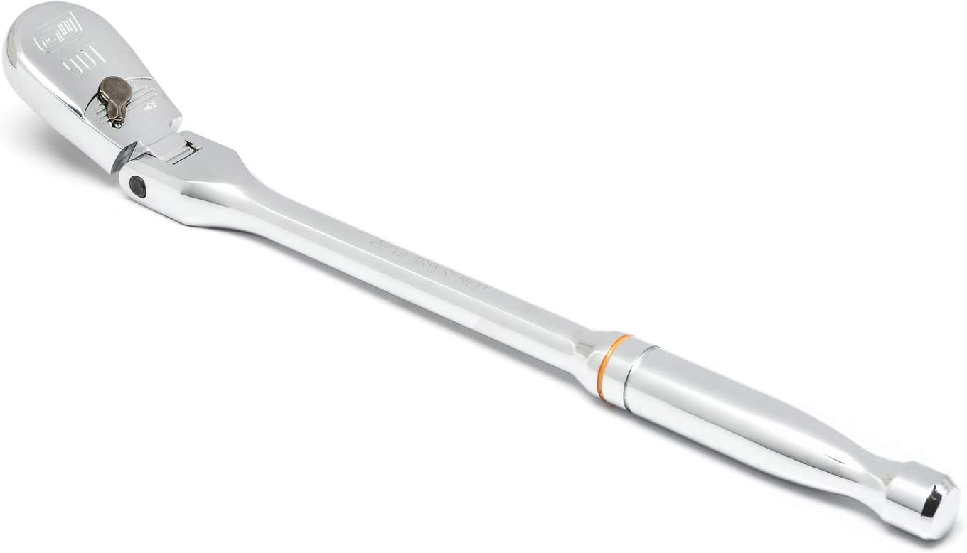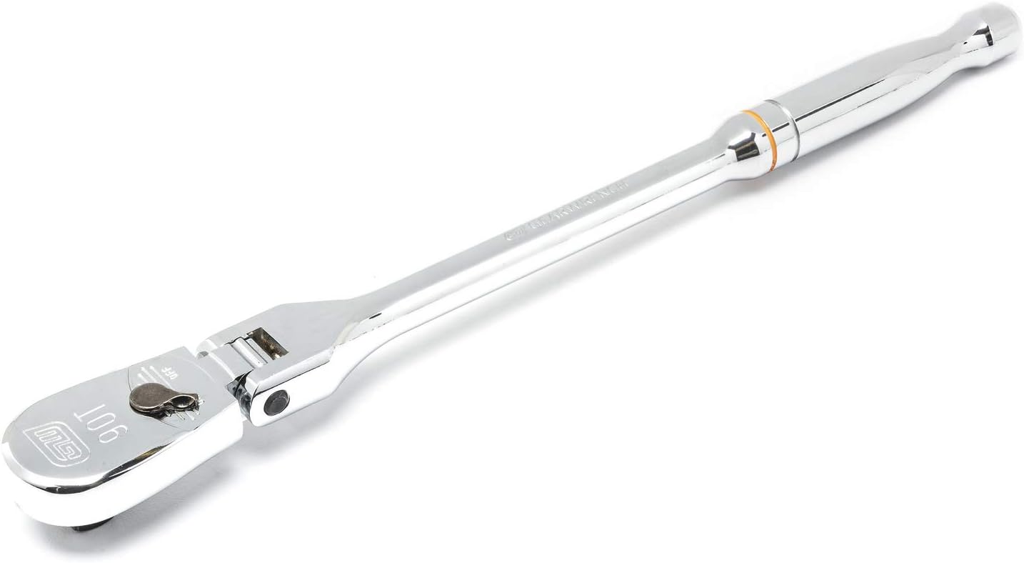 The Gearwrench 81215T 3/8 Drive 90 Tooth Full Polish Flex Teardrop Ratchet is a key tool for any professional mechanic. This flexible head ratchet allows users to access hard-to-reach areas with ease. Its 90-tooth gear design delivers a 4-degree swing for tighter turns, making it one of the most efficient ratchets in the market.