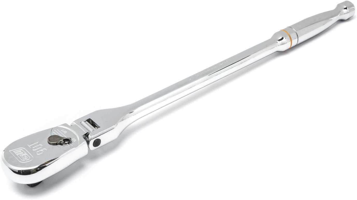 The Gearwrench 81306T 1/2 Drive 90 Tooth Full Polish Flex Teardrop Ratchet is designed for professional use. Its 90-tooth gear and 4-degree swing arc enable precise movement in confined spaces. This ratchet meets ASME torque performance requirements, making it one of the strongest on the market.